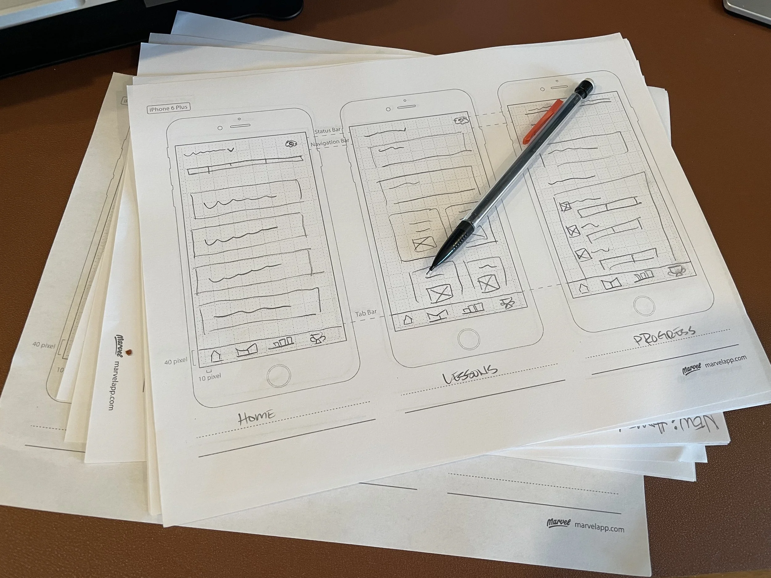 Low-fidelity sketches using Marvelapp templates.