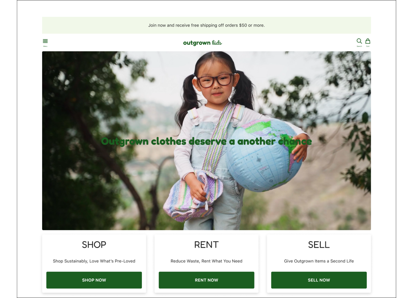 Outgrown Kids is a responsive web app designed to help parents and caregivers conveniently buy, sell, and rent gently used children’s clothing.