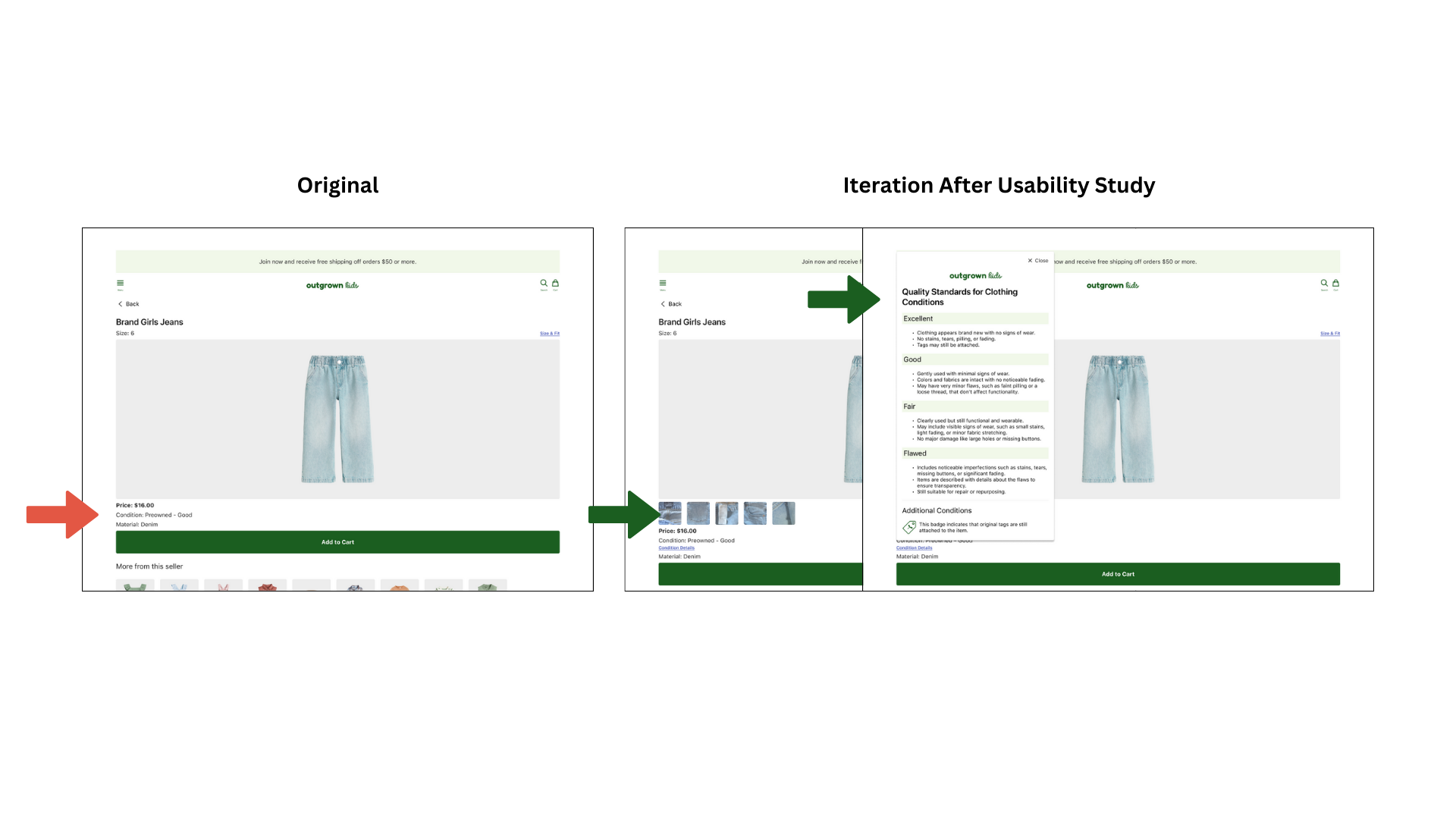 Parents needed an easy way to declutter. Designs focus on simplifying item listing with minimal steps.